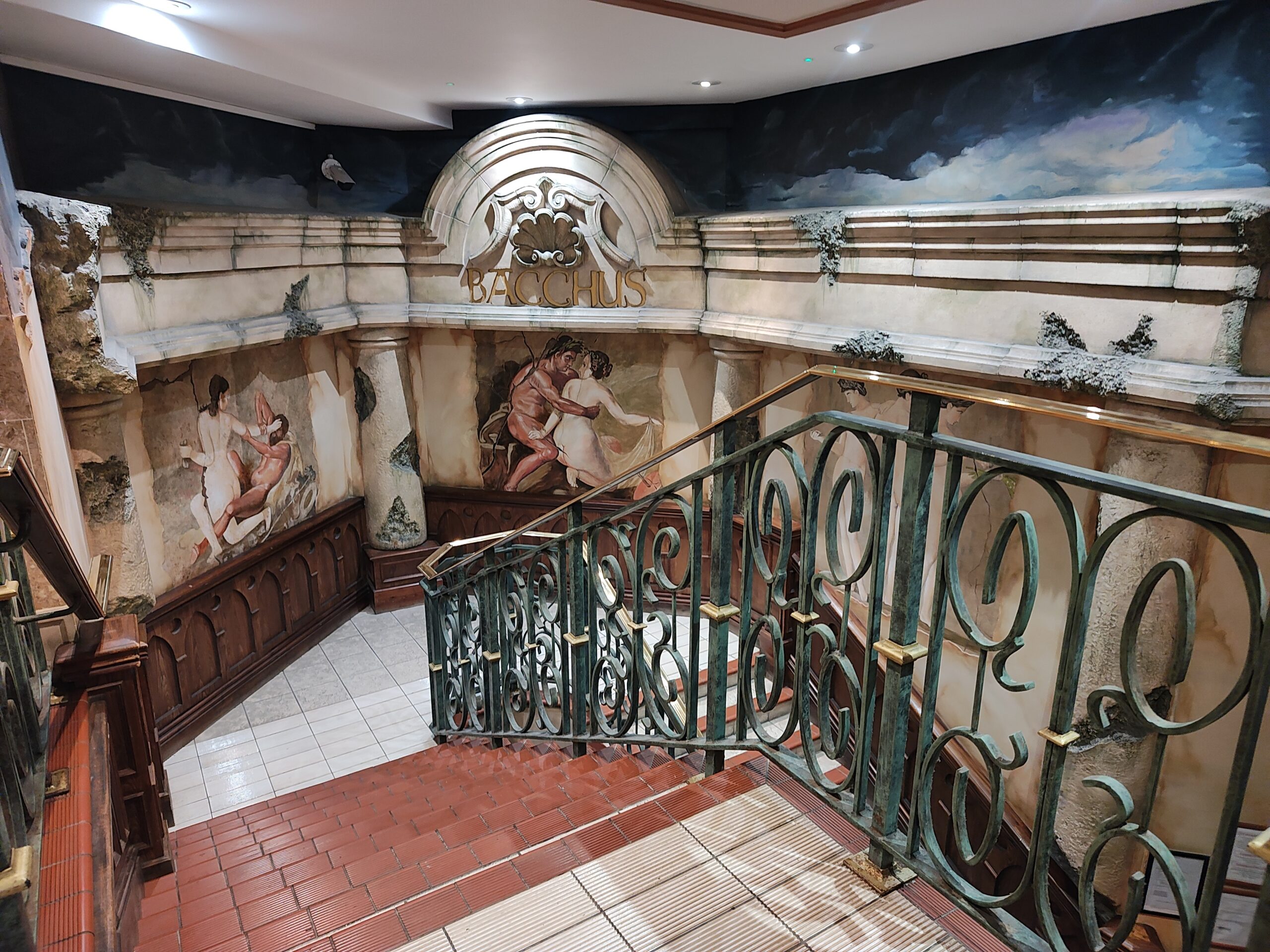Inside it was amazing. A series of linked underground caverns, decorated as a cross between a crypt and a Roman temple with large paintings of Roman deity’s adorning t