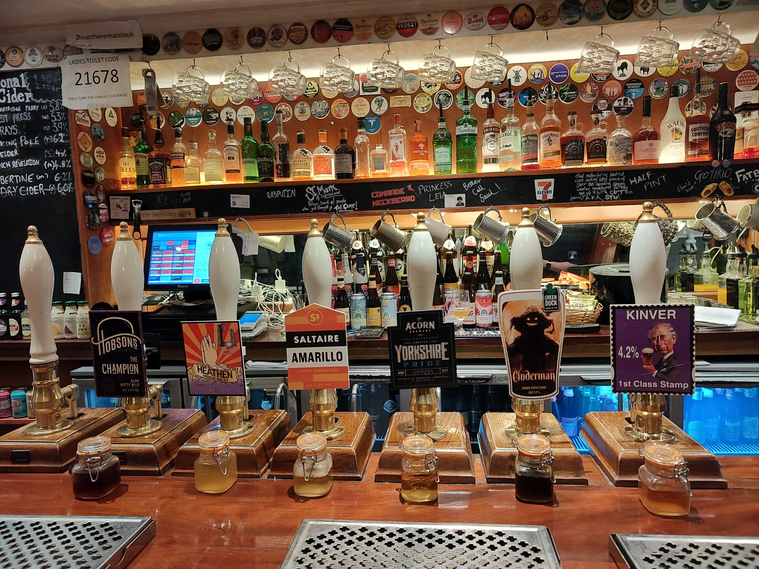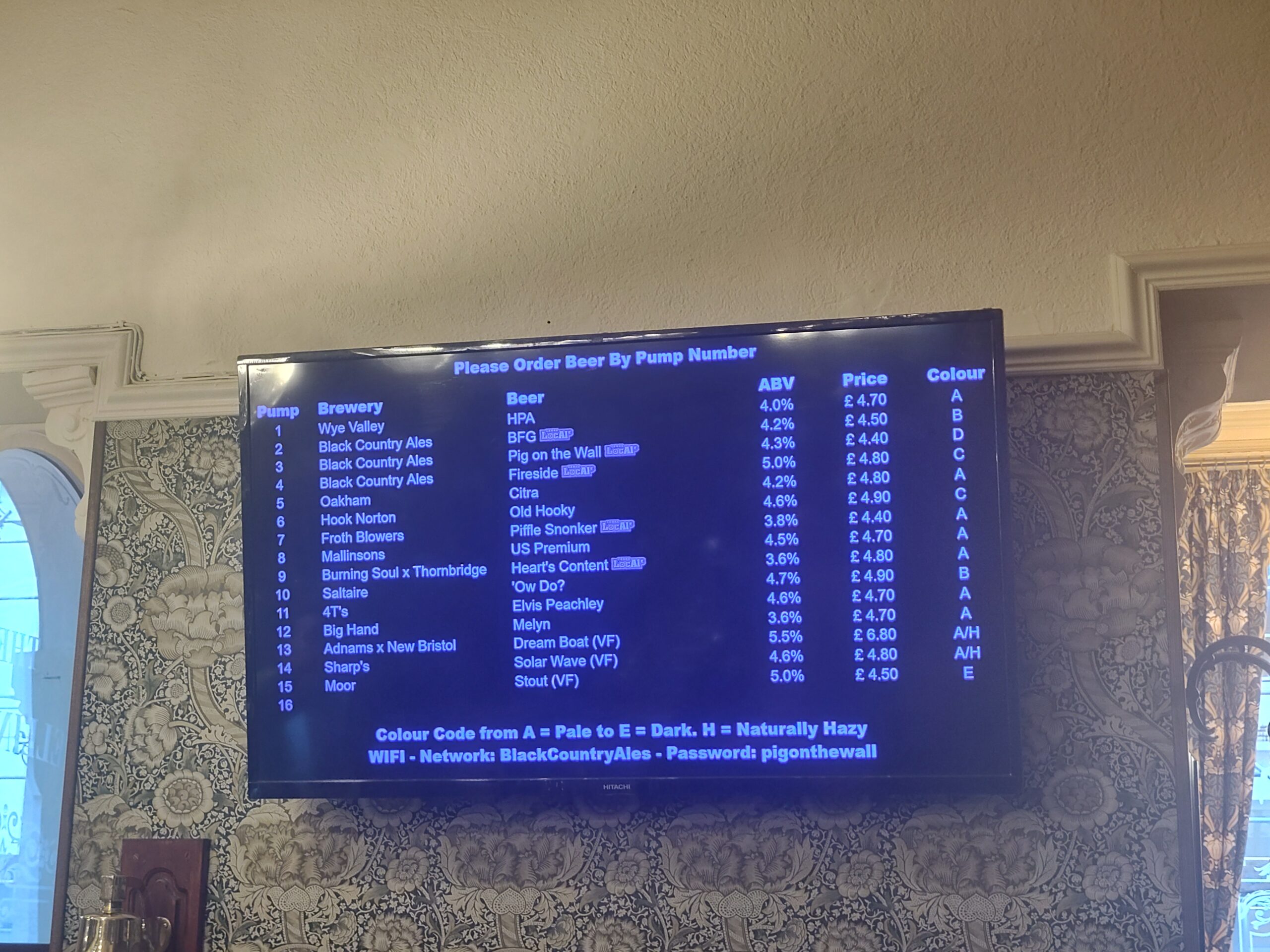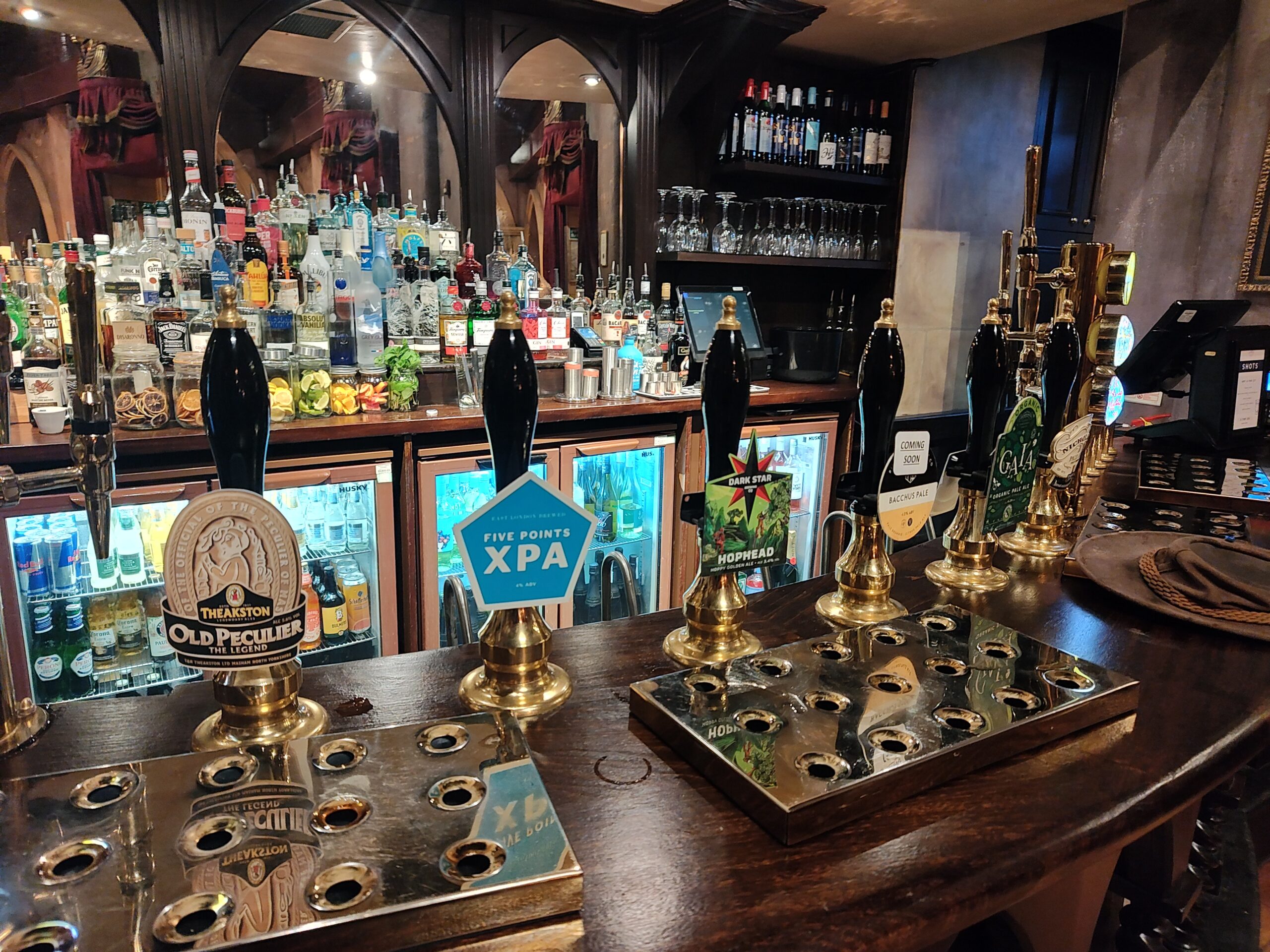 There is a good choice of beers with a row of 17 pumps selling beers in order of colour. There is also a screen showing the beers. The pub has an old-fashioned feel about it. They also sell over 100 whiskies.