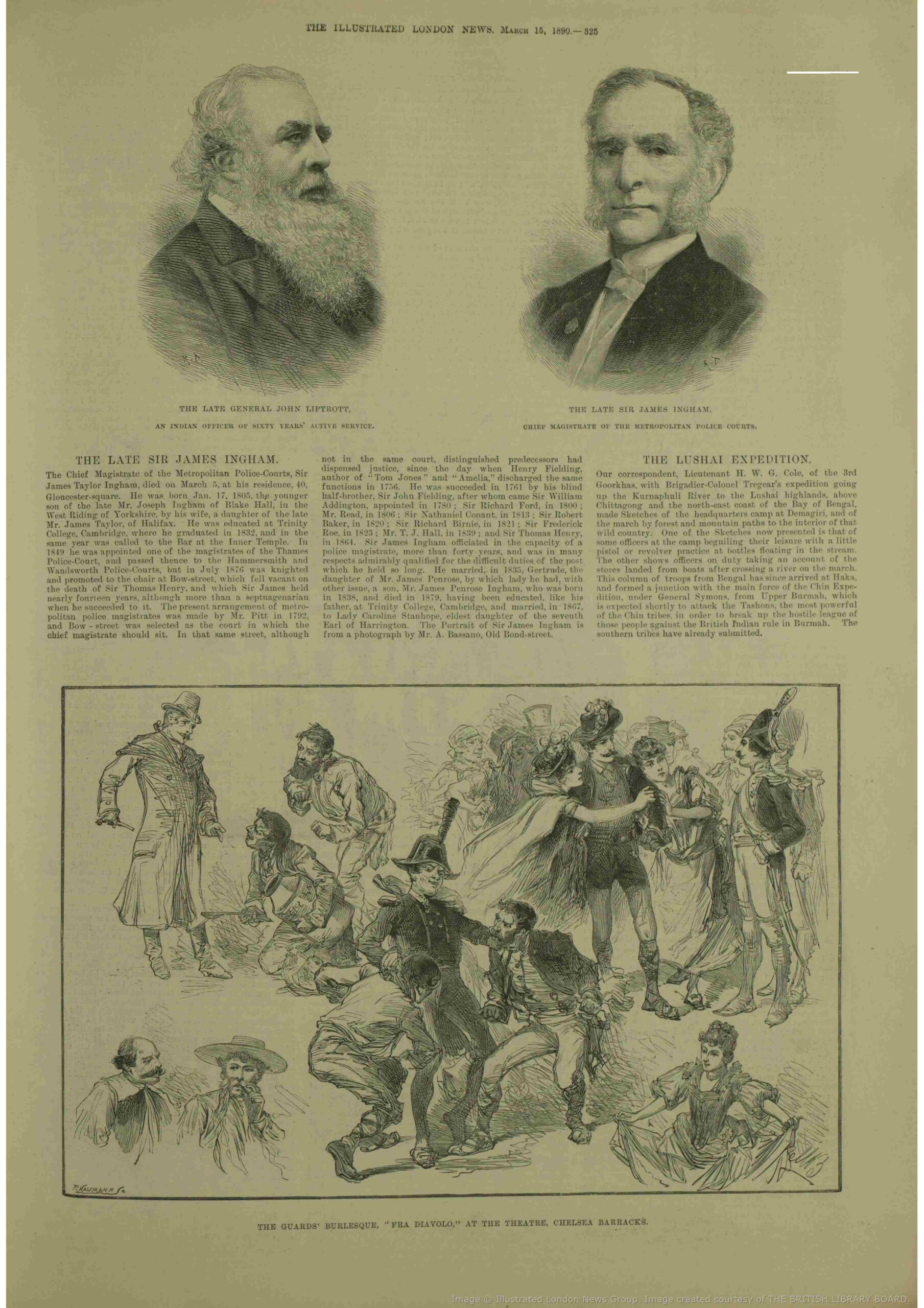 I found an article that was originally in The Illustrated London News (Saturday, 15th March, 1890) depicting an engraving that looks like it may have originated from a portrait I have of the General (shown above).